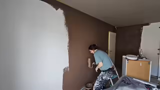 00:11:22Nachdem die notwendigen Vorarbeiten abgeschlossen sind, startet der eigentliche Anstrich. Die erste Schicht der Deckenfarbe wird aufgetragen, gefolgt von der Wandfarbe, als Bunkergrau. Der Streamer ist von der Farbwahl begeistert und zeigt das Ergebnis. Um Unebenheiten zu vermeiden und einen einheitlichen Farbton zu gewährleisten, geht er noch einmal mit einer zweiten, etwas trockeneren Schicht über die Wände und die Decke. Dabei erwähnt er, dass er die Arbeit trotz anstrengender körperlicher Tätigkeit genießt.