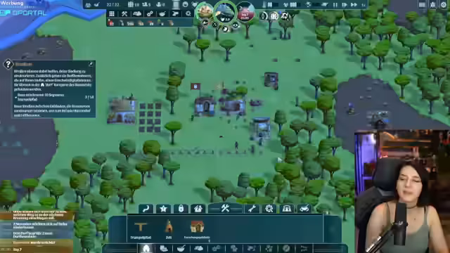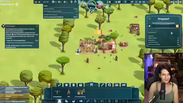 04:08:29Nachdem die grundlegende Infrastruktur steht, erweitert die Siedlung ihre Fähigkeiten. Ein Kundschafter wird losgeschickt, der wertvolle Ressourcen wie Eisenerz zurückbringt. Die Forschung schreitet voran und neue Gebäude wie eine Absteige für mehr Bewohner werden errichtet. Der Streamer realisiert, dass er sich nach wie vor in einer Tutorialphase befindet, auch wenn die fortschreitende Erkundung der Welt bereits dem Hauptspiel sehr nahekommt.