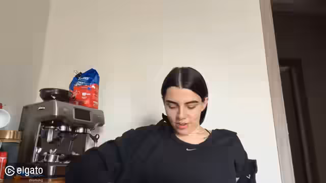 00:40:04Ein spontaner Versuch, einen professionellen Cappuccino zu machen, wird mit Humor begleitet. Nach anfänglichen Schwierigkeiten mit der Maschine erklärt die Streamerin den Prozess. Danach widmet sie sich ihrem Hund Juki, mit dem sie alltägliche Interaktionen teilt. Dazu gehören Spielmomente, Kommandos wie 'Hähnchen halten' und Diskussionen über Hundeverhalten und Erziehung.