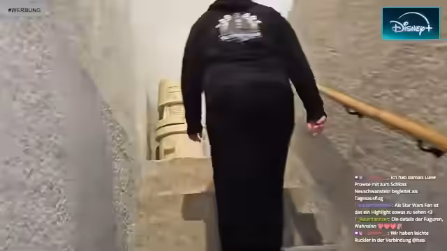 02:45:53Die Tour führt zu Bereichen mit einer deutlichen Verbindung zur Serie Andor, die exklusiv auf Disney+ verfügbar ist. Der Streamer preist die Qualität der Serie und ermutigt die Zuschauer, sie sich anzusehen. Zudem wird ein spezieller, vom Streamer gebauter Gegenstand gezeigt, der gerade noch in die Ausstellung passte, und es werden Autogramme und unterschriebene Requisiten der Darsteller präsentiert.