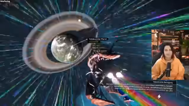 02:26:28Während einer Expedition bemerkt der Streamer Probleme mit seinem Raumschiff, dessen Rücklicht nicht funktioniert. Gleichzeitig sucht er nach Gold, um seine Ausrüstungen zu verbessern. Er wird von Sternenverkehrsregeln aufgehalten und muss Dokumente vorweisen, was ihn frustriert. Die Suche nach Gold gestaltet sich schwierig, da es nur in begrenzten Mengen vorhanden ist.