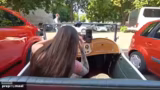 00:21:20Die Fahrt im ausgeliehenen roten Oldtimer beginnt, wobei der Streamer von der Hitze und der schlechten Kühlung des Handys klagt. Das Auto wird als heißes Gefährt beschrieben und die Kameratechnik wird erwähnt. Der Streamer streamt während der Fahrt, was auf eine mobile Einrichtung hindeutet, und erwähnt, dass es sich um ein gemietetes Fahrzeug handelt.