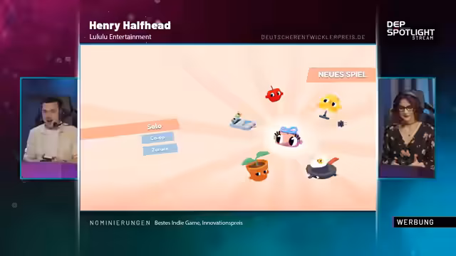 01:09:54Der Stream beginnt mit der Vorstellung des Spiels „Henry Half-Head“, einem knuffigen Abenteuerspiel, bei dem die Spieler in die Rolle von Henry schlüpfen, einem Baby mit halbem Kopf, das die Welt entdeckt und Aufgaben löst, indem es in verschiedene Gegenstände schlüpft. Das Sounddesign des Spiels wird gelobt, und die Möglichkeit, die Form zu wechseln, wird demonstriert. Die Streamer erkunden das Zimmer von Henry und lernen die grundlegenden Mechaniken des Spiels kennen, wie das Springen, das Wechseln der Form und das Interagieren mit Objekten. Sie entdecken, dass man durch langes Drücken von B und dem linken Trigger die gewünschte Form auswählen kann, um sich in verschiedene Gegenstände zu verwandeln und so Rätsel zu lösen. Das Spiel wird als ein charmantes Co-op-Abenteuer beschrieben, das für den Innovationspreis und das beste Indie-Game nominiert ist.