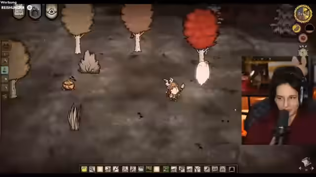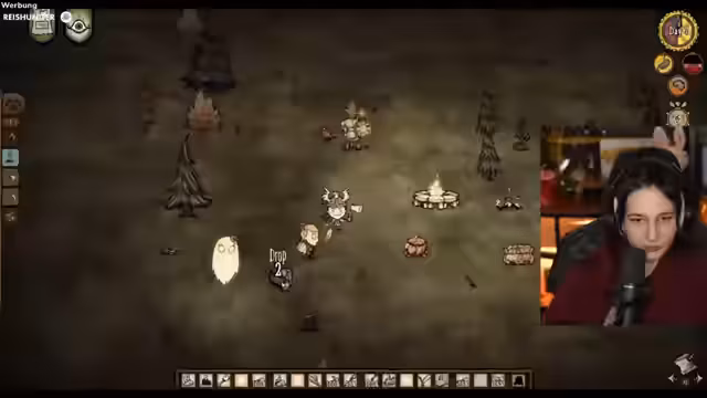 02:35:45Die Spielhandlung dreht sich um das Überleben in der Welt von Don't Starve. Der Spieler kocht Meatballs, sammelt Ressourcen wie Stein und Gold und baut Einrichtungen wie einen Kühlschrank und eine Alchemy Engine. Er interagiert mit diversen Monstern, darunter Frösche, Wehrschweine und Schatten, die ihn angreifen und ihn in gefährliche Situationen bringen, in denen er sein Leben verlieren kann.