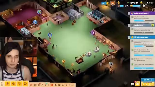 05:33:58Das Stream-Team macht Fortschritte im Museum, indem es Mitarbeiter für verschiedene Aufgaben einsetzt und weiterbildet. Der Streamer bemerkt, dass einige Geister unglücklich sind und nach Lösungen sucht, um ihre Begeisterung zu steigern. Probleme wie Verschmutzung und das Fehlen bestimmter Zimmer werden angesprochen. Ein Expeditionsteam wird in das Spiel geschickt, während der Streamer parallel den Chat nach Tipps zur Erleuchtung im Spiel fragt und seine Verwirrung über die Spielmechaniken teilt.