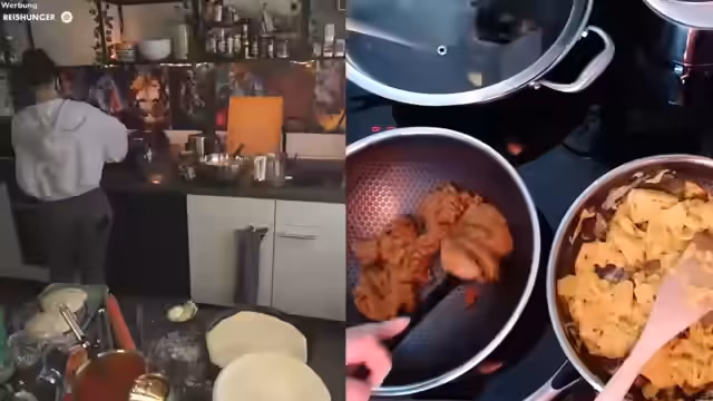 00:11:50Es wird überlegt, veganen Gyros von Green Force auf eine Pizza zu machen. Zuvor soll es aber veganes Ei zum Frühstück geben, welches ebenfalls von Green Force stammt. Es wird erwähnt, dass Green Force tolle vegane Produkte anbietet. Die Zubereitung des veganen Eis wird geplant, inklusive der Verwendung von Kalanamak-Salz. Es wird kurz überlegt, ob Ei-Pizza eine Option wäre. Die Streamerin mischt 10 g Ei-Mix mit 50 ml kaltem Wasser. Sie äußert sich, dass sie raus in die Kälte muss, wenn sie noch Kartoffeln aus der Garage zum Kochen holen möchte. Abschließend wird Petersilie zum Verfeinern des veganen Rühreis hinzugefügt.