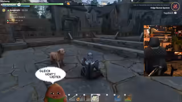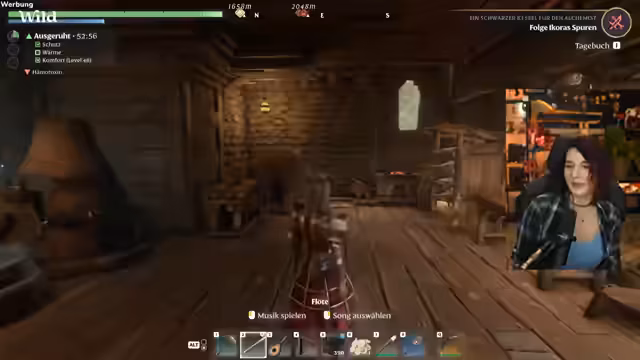 02:57:38Ein spontaner Gedankensprung führt zu einer Partyankündigung für den 16. Februar, die eine ganze Partywoche umfassen soll. Nachdem der Streamer seine Bedenken bezüglich unklarer Pläne geäußert hat, konzentriert er sich wieder auf das Spielen. Er sucht nun das Heilkraut Kamille, um seine Krankheit zu heilen, nachdem ihm im Chat ein Gegenmittel namens Hämotoxin-Gegenmittel empfohlen wurde. Gleichzeitig kündigt er an, für ein Formel-1-Turnier im Jahr 2025 eingeladen worden zu sein, dessen genauer Ablauf ihm noch unklar ist.