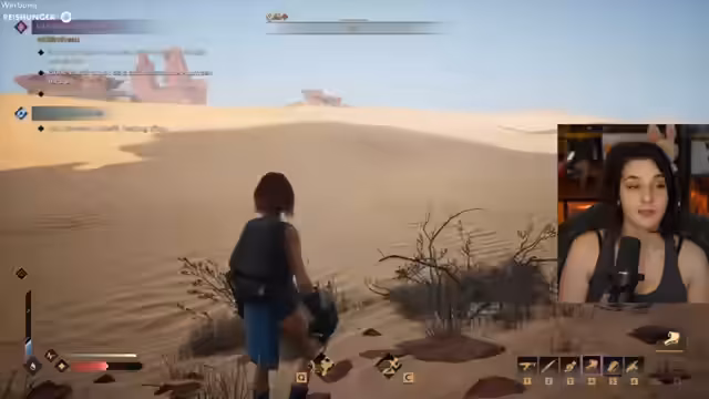 07:38:56Der Streamer äußert tiefergehende Gedanken über die Spielwelt und die Rolle des Charakters. Er hinterfragt, warum sein Charakter ständig ohne Hose dargestellt wird und ob dies ein Symbol für Freiheit oder nur ein technisches Problem ist. Diese Überlegungen sind mit humorvollen Vergleichen und Selbstreflexion gespickt, wobei er auch sein eigenes Leben mit dem im Spiel vergleicht. Parallel dazu sucht er nach Wegen, seine Situation im Spiel zu verbessern, während er kontinuierlich mit den Herausforderungen der Wüstenumgebung kämpft.