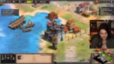 05:07:48Ein neuer strategischer Ansatz wird verfolgt. Der Streamer baut eine Universität und einen Marktplatz, um ins nächste Zeitalter vorzuschreiten. Die Ressourcenverteilung wird optimiert und es wird nach Gold gesucht, um Mönche zu rekrutieren. Die Kämpfe dauern weiterhin an, aber die Angriffswellen werden etwas besser koordiniert.