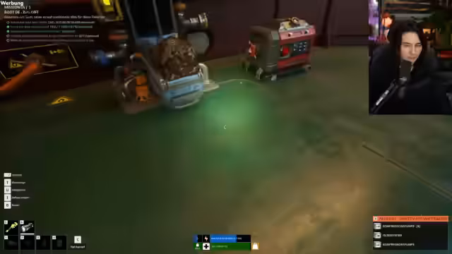 02:38:27Die Spielerin und der Chat tauschen sich über humorvolle Witze und Anspielungen aus, während die Energieprobleme im Spiel weiterhin bestehen. Es wird diskutiert, was passiert, wenn die Energie weg ist und wie sich dies auf das Leben im Spiel auswirkt. Die Spielerin versucht, ihre Behälter für Diesel und Benzin zu platzieren und ist frustriert über die Schwierigkeiten, die benötigten Materialien wie Legierungsrahmen, Speicherzylinder und Kühler zu finden. Die Diskussionen reichen von der Bedeutung des Namens 'Magnet' bis hin zu persönlichen Anekdoten über das Vergessen des Kochens vor einer Watchparty. Die Spielerin entdeckt eine Pistole und eine Granate und fragt sich nach den Ranganforderungen für Waffen. Die Suche nach Munition und das Verständnis der verschiedenen Pistolenmagazine sind die nächsten Herausforderungen, denen sie sich stellen muss, während sie versucht, ihr Schiff für die Weiterfahrt vorzubereiten.