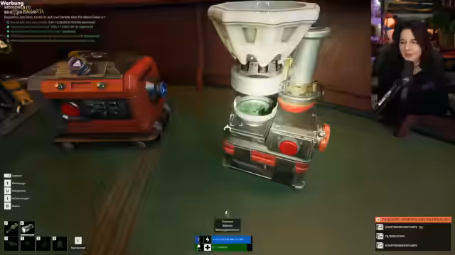 01:41:33Ein Zuschauer berichtet von einem Schreiben der Handwerkskammer, das ihm erlaubt, sich als Elektriker selbstständig zu machen, sofern er einen 60-minütigen Theorie-Test besteht, was als 'mega' und 'voll gut' kommentiert wird. Parallel dazu versucht die Spielerin, die Energieversorgung ihres Schiffes zu verstehen und aufzubauen. Sie entdeckt einen Stromgenerator, der Benzin benötigt, um Strom zu erzeugen, und einen weiteren, der Strom in Diesel umwandelt. Dies führt zu einer Kette von Abhängigkeiten und der Erkenntnis, dass sie Benzin und weitere Komponenten wie eine Kompressionspumpe benötigt. Die Spielerin ist verwirrt über die komplexen Zusammenhänge und die Notwendigkeit, verschiedene Generatoren und Treibstoffe zu kombinieren, um ihr Schiff mit Energie zu versorgen.