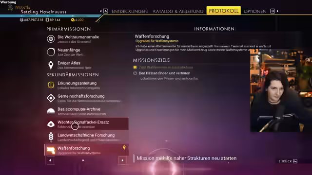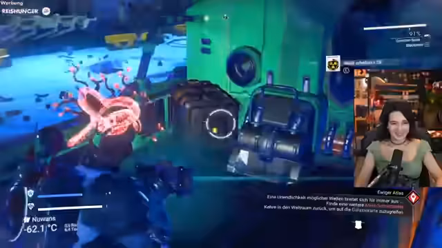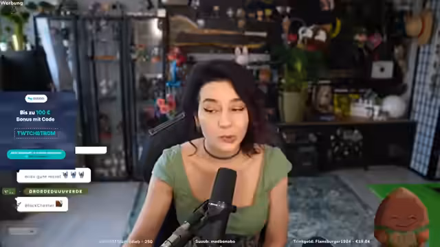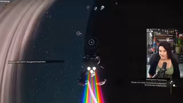 06:25:47Die Streamerin interagiert intensiv mit dem Chat, verliest Spenden und感谢 Zuschauer für ihre Unterstützung, wobei technische und supporterbezogene Anfragen ignoriert werden. Dazwischen taucht ein Thema über Namen und deren Bedeutung auf, woraufhin eine längere Unterhaltung über das Spiel No Man's Sky folgt. Sie erklärt, dass es ein Erkundungsspiel mit endlosen, prozedural generierten Planeten, einer kryptischen Hauptgeschichte und unzähligen Möglichkeiten zum Bau von Städten und dem Sammeln von Ressourcen ist.