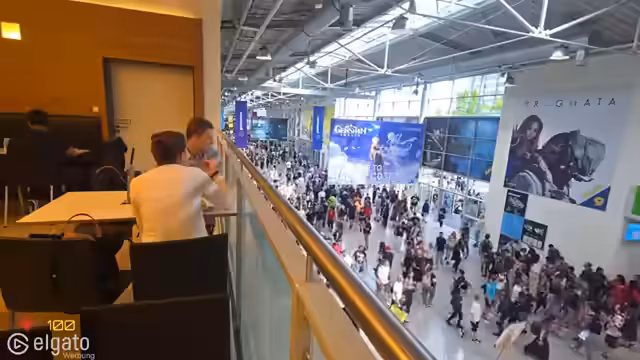 02:41:21In der Halle angekommen, unterhält sich der Streamer über verschiedene Themen und interagiert mit den Zuschautern. Er erwähnt sein Hasi-Kosplay und streitet scherzhaft über sein Alter, das ihn immer wieder jünger dastehen lässt. Er zeigt sich begeistert von den Ständen, wie z.B. dem Logitech-Headset, und beschreibt die Musik als "Sommer-Vibes". Er bereitet sich auf sein Indie-Game-Zocken um 12 Uhr vor.