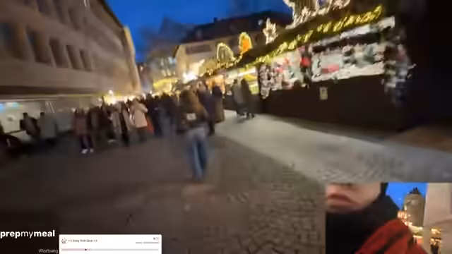 04:17:00Der Streamer erkundet den Stuttgarter Weihnachtsmarkt und kommentiert die Atmosphäre. Er stellt fest, dass trotz des Marktes keine Musik gespielt wird, und erklärt die Lizenzkosten für Musik. Anschließend entdeckt er einen Baumstriezel und bemerkt die vielen Fahrräder auf dem Gelände. Die Stimmung wird als eher ruhig beschrieben, während er über die Beweggründe der Anwesenden spekuliert.