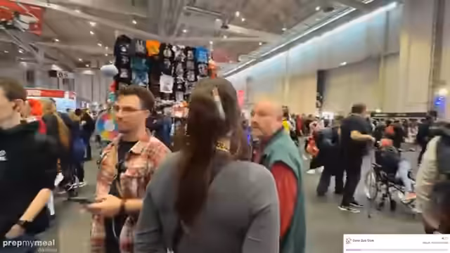 00:00:03Die Ankunft in der Halle gestaltet sich anfangs etwas chaotisch, da Marco zunächst an einem falschen Ausgang auftaucht. Nach kurzer Orientierung findet man sich jedoch zusammen und erkundet die Veranstaltung. Die Halle ist stark besucht, was für einen gut frequentierten Event spricht. Hier gibt es vielfältige Stände und Attraktionen, die Besucher werden ermutigt, sich frei zu bewegen und sich das Angebot anzusehen.