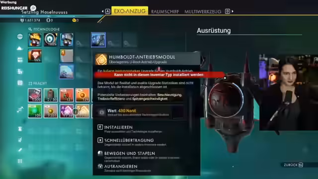 04:01:52Der Streamer verwendet den Trümmerentfernungsmesser, um nach Wracks im Weltraum zu suchen. Er muss aus dem Pilotensitz aussteigen und mit dem Gerät scannen, Trümmerelemente lokalisieren und ein Logbuch aufnehmen, das er für seine Expedition benötigt. Er ist unter Zeitdruck und muss gleichzeitig seine Lebenserhaltung und Sauerstoff auffüllen. Nachdem er das Wrack gefunden und das Logbuch analysiert hat, fliegt er weiter zum zweiten Treffen und stellt fest, dass er für die nächste Phase Kabelbäume benötigt.