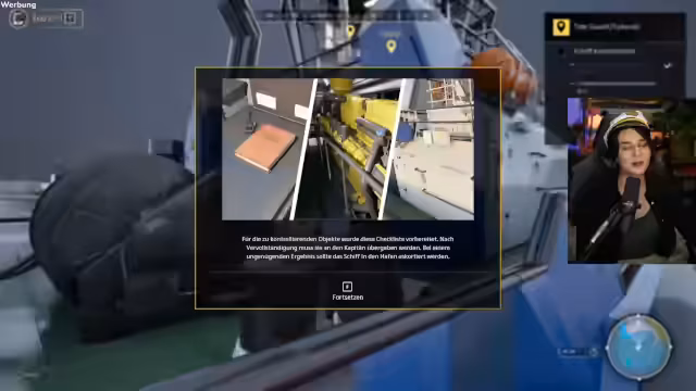 09:35:03Der Streamer spielt eine Seefahrt-Simulation, wobei er Aufgaben wie das Escort von Schiffen und die Kontrolle des Verkehrs auf dem Meer übernimmt. Er erklärt verschiedene Spielmechaniken wie das Scannen von Schiffen, das Andocken und die Nutzung des Funkgeräts. Streamer zeigt Schwierigkeiten bei der Navigation und dem Andocken der Schiffe.