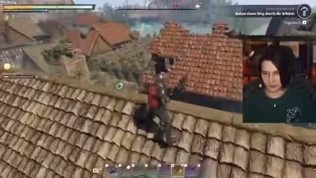01:43:31Die Erkundung der Spielwelt wird zunehmend gefährlich und chaotisch. Der Streamer stürzt mehrmals in den Tod, versucht verzweifelt, durch schwieriges Gelände zu navigieren und kämpft gegen Monster, die ihn jagen. Er bittet die Community um Hilfe, um eine 'weiche Landung' zu perfektionieren, und unterbricht die Action immer wieder mit ablenkenden Kommentaren. Diese reichen von der Erwähnung eines 'geheimen Geheimstreams' über die Warnung vor 'Schweinen', die abseits des Weges lauern, bis zu einem plötzlichen, humorvollen Ausflug in eine Diskussion über den 'richtigen Geruch' seiner Stimme und ein Missverständnis mit einem 'Faultier-Emoji' im Chat.