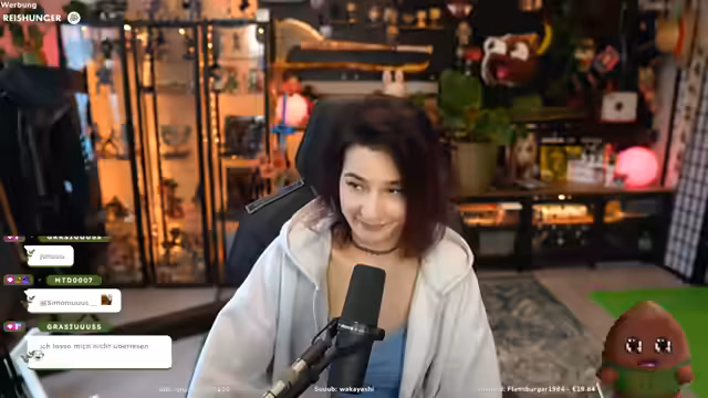 00:44:15Ein Nutzer erzählt eine Geschichte, wie er wegen eines Essens-Tips des Streamers im Krankenhaus landete, was zu einer leichten Panik und dem Hinweis führt, keine Ratschläge anzunehmen. Die Unterhaltung über Spenden geht weiter: Der Streamer erklärt, dass geschickte Gegenstände in Gang 3 abgelegt werden müssen und thematisiert das Problem, mit Keksen umzugehen, da er eine spezielle Eigenart hat und sie nicht bekommt.