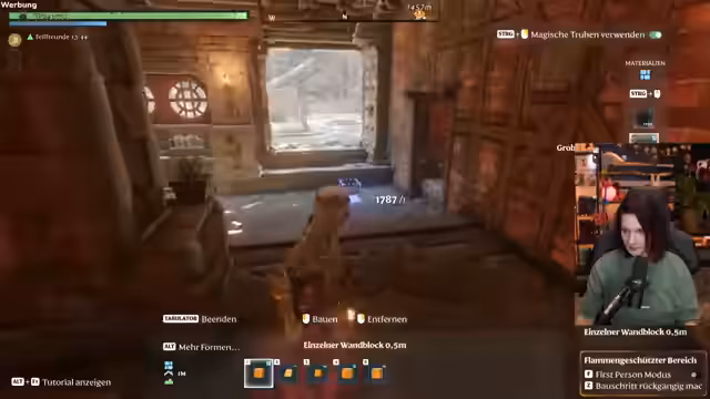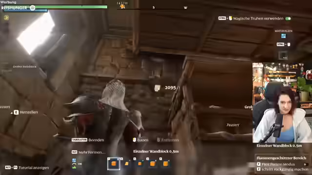 07:59:03Der Streamer arbeitet weiterhin an den Dächern und Verbindungen zwischen den verschiedenen Gebäuden und optimiert die Wege, sodass er nun im Kreis durch die Häuser laufen kann. Ein Schlüsselelement des Baus sind runde Fenster und eine Treppe, die er ständig anpasst. Die Innenausstattung umfasst diverse Möbel wie ein Bücherregal, das als 'Chille-Ecke' dient, und Lampen für Beleuchtung. Er plant, Schilder für Truhen und zur Beschriftung zu erstellen, um die Organisation zu verbessern und dem Bau mehr Individualität zu verleihen.