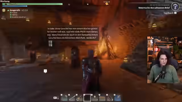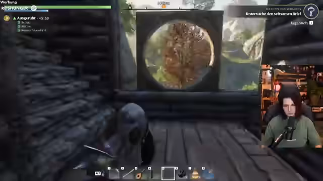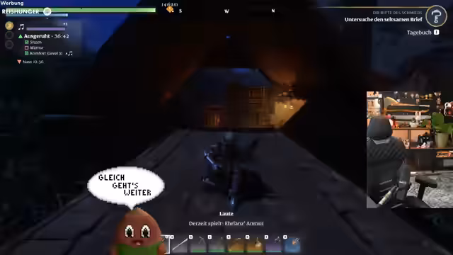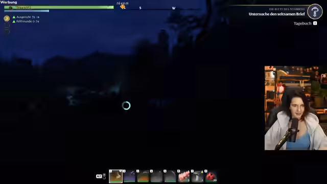 06:12:08Nach dem Erfolg mit dem Hund will der Streamer eine neue Angel-Quest angehen. Dafür muss er spezielle Köder herstellen, was das Sammeln von Ressourcen wie Glühwürmchen erfordert. Dies führt zu einer nächtlichen Expeditionsjagd durch eine dunkle und gefährliche Umgebung. Der Streamer kämpft dabei gegen feindliche NPCs und muss sein Inventar verwalten, um seine Mission zum Erfolg zu führen.