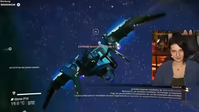 02:14:46Der Stream startet mit dem Interesse an Erkundung und Spielfortschritt. Der Streamer erkundt eine neue Welt und zeigt, wie man sich mit Medikamenten heilt. Es werden Ressourcen wie Nickel, Silber und Kupfer gesammelt, um neue Technologien zu entwickeln. Die Schiffsfähigkeiten werden getestet und Steuerung sowie Energieverbrauch diskutiert.