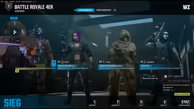 02:47:51Nach einer längeren Phase des Kampfes und strategischer Manöver, bei denen das Team mehrere Male Feinden gegenübersteht und ums Überleben kämpft, gelingt dem Streamer ein bedeutender Sieg. Er eliminiert ein ganzes Team, was zu seinem ersten Warzone-Win führt. Dieser Erfolg wird im Stream mit viel Begeisterung gefeiert. Der Streamer zeigt den Siegerscreen und interagiert mit dem Chat, der seine Freude teilt, und diskutiert im Anschluss die Spielstatistiken und die Spaßfaktoren des Spiels.