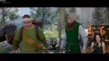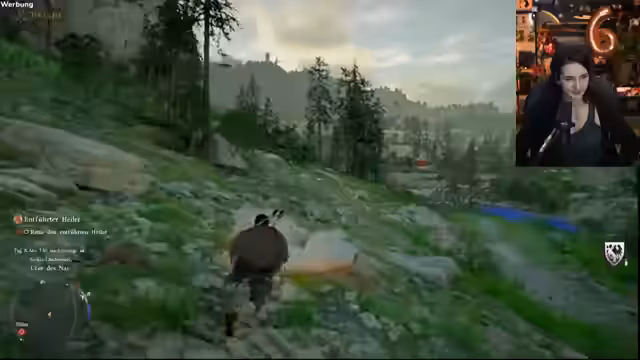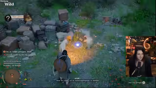 08:17:43Der Streamer beginnt mit der Verfolgung der gestohlenen Kühe, eine Quest, die er im Spiel verfolgt. Dabei stolpert er über verschiedene Hinweise und Erinnerungsfragmente, die er mit einer Laterne beleuchten muss. Er versucht, den Aufenthaltsort der Tiere zu finden, stößt aber zunächst nur auf tote Rinder und die Spuren der Banditen, die sie gestohlen haben. Die Jagd gestaltet sich schwieriger als erwartet und führt ihn in ein gefährliches Banditenlager.