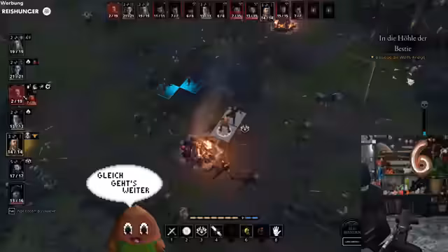 09:13:45Ein Kampf gegen mehrere Gegner, die den Streamer überraschen, verläuft chaotisch und endet mit seinem Tod. Er kämpft mit der Steuerung, insbesondere mit dem Blocken, und stellt fest, dass er sich in hektischen Situationen oft nicht richtig verteidigen kann. Trotzdem gefällt ihm das Kampfsystem und die Möglichkeit, Tiere wie Schafe und Hühner zu stehlen oder mit ihnen zu interagieren. Er betont den Charme der unvorhersehbaren Ereignisse, die in der Welt geschehen.
