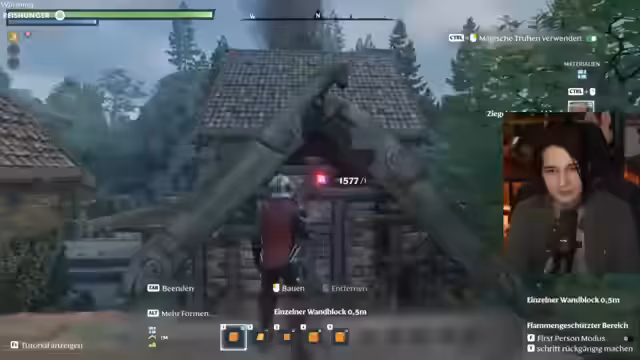 02:57:10Nach der erfolgreichen Dachkonstruktion plant der Streamer, das Gebäude von innen zu sichern und weitere Räume anzubauen. Die sichtbaren Pflanzen an der Fassade sind ein Ärgernis, da sie nicht einfach entfernt werden können. Überlegt wird, die Struktur zu erweitern oder sie in ein Eckhaus umzuwandeln. Das Gebäude ist nun funktional und hat ein ansprechendes Äußeres, auch wenn der Streamer der feine Schliff noch fehlt.