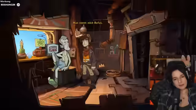 05:06:36Der Stream startet mit einer dynamischen Szene, in der der Protagonist Rufus mit verschiedenen Charakteren interagiert und Aufgaben erledigt. Er muss Kerzen besorgen und Briefe in einen Briefkasten werfen, während er sich gleichzeitig mit den Eigenarten seines Umfelds wie einer luxuriösen, aber baufälligen Villa und einem bibliophilen Nachbarn auseinandersetzt. Die Dialoge sind witzig und chaotisch und bauen die Grundstimmung des Streams auf.