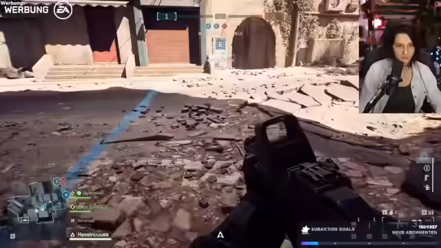 01:47:08Die Streamerin startet ihre erste Runde in Battlefield 6 im Einführungsmodus. Sie wählt die Klasse 'Sturm', da sie damit am ehesten zurechtkommt. Die ersten Erfahrungen sind chaotisch, da sie sich erst an die Steuerung und das Gameplay gewöhnen muss. Es kommt zu Verwirrungen beim Einsteigen in Fahrzeuge und der Identifizierung von Teammitgliedern und Gegnern. Trotz anfänglicher Schwierigkeiten und häufigem Sterben zeigt sich die Streamerin motiviert und freut sich über jeden Kill. Parallel dazu versucht sie, Zuschauer in ihr Team einzuladen, was sich aufgrund von Verbindungsproblemen und fehlenden Freundschaftsanfragen als Herausforderung erweist. Die Suche nach Teammitgliedern und die Navigation durch die Menüs zur Freundesverwaltung nehmen einen Teil der Spielzeit ein, während die Zuschauer im Chat Hilfestellung leisten.