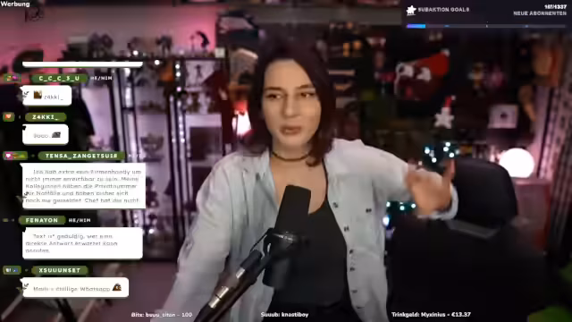 01:13:00Die Streamerin und die Zuschauer diskutieren den Umgang mit Arbeitsnachrichten, die außerhalb der regulären Arbeitszeit eintreffen. Es wird die Frage aufgeworfen, wie man reagieren sollte, wenn das Handy nachts klingelt und es sich um eine unnötige Arbeitsnachricht handelt. Die Streamerin äußert Verständnis dafür, dass solche Nachrichten ärgerlich sein können, betont aber, dass sie selbst dazu neigt, Nachrichten zu schreiben, wann immer es ihr passt, in der Annahme, dass der Empfänger sie liest, wenn er wach ist. Es wird auch darauf hingewiesen, dass wichtige Nachrichten bis zum nächsten Morgen warten können, es sei denn, es handelt sich um Rufbereitschaft. Einige Zuschauer blockieren sogar Arbeitsnummern, wenn unwichtige Nachrichten außerhalb der Arbeitszeit gesendet werden, um eine klare Trennung zwischen Berufs- und Privatleben zu gewährleisten.