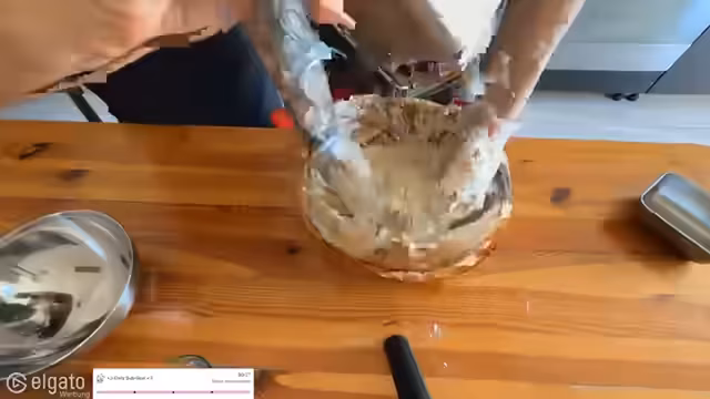 03:27:17Die Zubereitung des Pizzateigs schreitet voran, wobei Knoblauch und Zwiebeln als weitere Zutaten für die Pizza erwähnt werden. Es wird betont, wie wichtig rote Zwiebeln für den Geschmack sind, insbesondere im Döner. Das Gemüse für das Mittagessen ist fertig, und der Reis wird gewaschen, wobei die Wichtigkeit des Reiswaschens erneut hervorgehoben wird. Der Streamer bereitet die Utensilien für den Pizzateig vor, darunter Behälter für Mehl, Salz, Öl und Wasser. Es wird Wert auf Sauberkeit gelegt, obwohl der Teig nur mit Wasser gereinigt wird. Der Teig soll heute zubereitet und morgen gegessen werden, da er 24 bis 48 Stunden ruhen muss. Es wird Musik gewünscht, um die Stimmung zu verbessern, während 500 Gramm Mehl, 15 Gramm Salz und 15 Gramm Öl abgemessen werden. Der Teig wird geknetet, wobei der Streamer Handschuhe trägt. Nach dem Kneten wird der Teig zu einem Ball geformt und für eine halbe Stunde zum Ruhen beiseitegelegt.