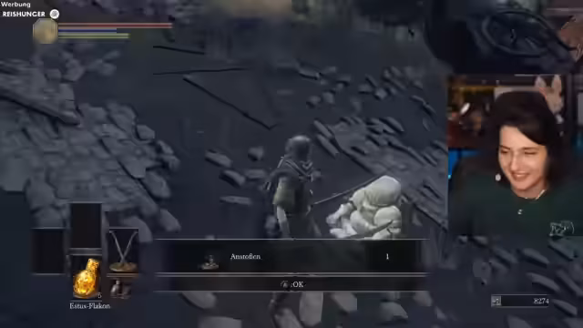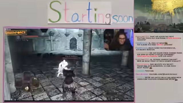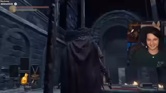 02:09:53Im Stream werden die Spielereignisse aus Dark Souls 3 wiedergegeben. Der Streamer sammelt Seelen, um zu leveln, und sucht nach verpassten Gegenständen, was ihn in einem zyklischen Pfad festhält. Die Suche wird durch die Erkundung von Dächern und Begegnungen mit Gegnern wie den 'Agro-Omas' und Knast-Gegnern unterbrochen. Die Gegend wird als wenig belohnend beschrieben, da der Kampf gegen viele Gegner nur geringe Ausbeute bringt.