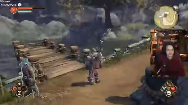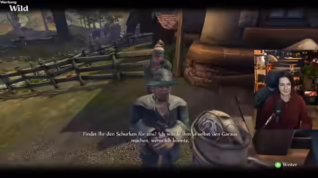 03:35:40Auf dem Weg zur Mission durchquert der Streamer die Spielwelt von Fable und interagiert mit ihrer Umgebung. Er hilft Dorfbewohnern und durchsucht Kisten, um Gegenstände zu finden. Währenddessen kämpft er immer wieder mit unübersichtlichen Kartendarstellungen und Wegfindung, was zu kleinen Irrwegen und Unmut führt. Trotzdem bleibt er auf dem Mission und nähert sich dem Greedwood-See.
