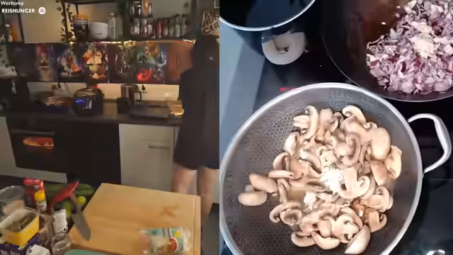 Es wurde über die Zubereitung mehrerer Gerichte berichtet. Zuerst wurde ein Glasnudelsalat, anschließend eine vegane Paprikasuppe und zuletzt gefüllte Datteln zubereitet. Parallel dazu wurden der Kauf einer neuen Fritteuse sowie Haushaltsprobleme besprochen. Zum Abschluss wurde eine Clip-Analyse gezeigt.