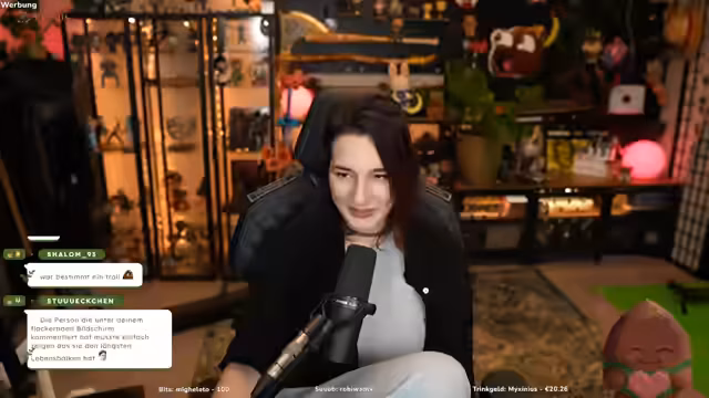 02:53:53Nach einem missverständlichen Kommentar im Chat geht es um eine Diskussion über den Umgang mit Kritik und Mobbing. Die Streamerin stellt klar, dass sie sich nicht über die Körpergröße von Personen lustig macht, insbesondere weil sie selbst Mobbing erfahren hat. Sie interpretiert den Vorwurf als missverstandene Ironie und betont, dass sie die Schwere von Mobbing erkennt und sich anstrebt, verantwortungsvoll mit dem Thema umzugehen.