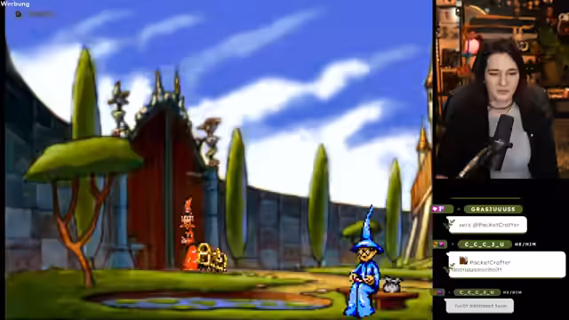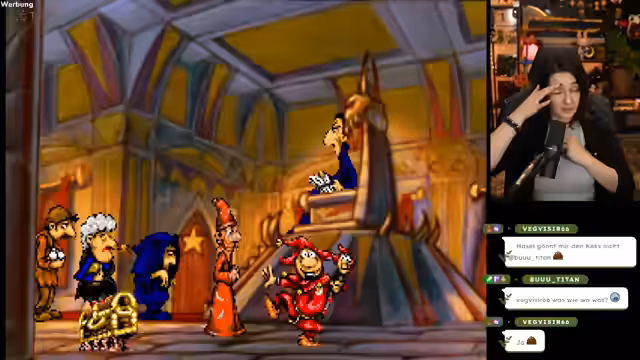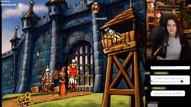 04:45:50Nachdem das Spiel geladen wurde, beginnt der Streamer seine Reise in der Stadt Ankh-Morpog. Er interagiert mit verschiedenen Charakteren, darunter ein Bürger mit Besen, der ihn auf Dächern für "unschuldige Leute" warnt. Der Streamer versucht, einen Spiegel an eine bestimmte Stelle zu hängen, was jedoch nicht funktioniert. Er findet den "Drachenatem" und erhält einen "Frosch" für sein Inventar, während er gleichzeitig den Chat mit humorvollen Kommentaren und Running Gags wie "Drachen! Drachen!" versorgt.