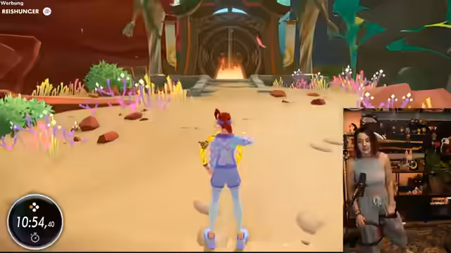 01:22:24Der Streamer startet das Spiel Ring Fit Adventure auf der Nintendo Switch. Es werden die grundlegenden Spielmechaniken erklärt, bei denen physische Übungen mit einem Ring-Controller durchgeführt werden, um im Spiel voranzukommen. Es werden verschiedene Übungen wie Hüftkreisen und Armstütze gezeigt und die motivierende Anleitung des Spiels erwähnt. Der Streamer hat Schwierigkeiten mit der Balance und der Ausdauer, besonders bei den armlastigen Übungen, und sammelt Erfahrungspunkte, um den Level zu erhöhen.