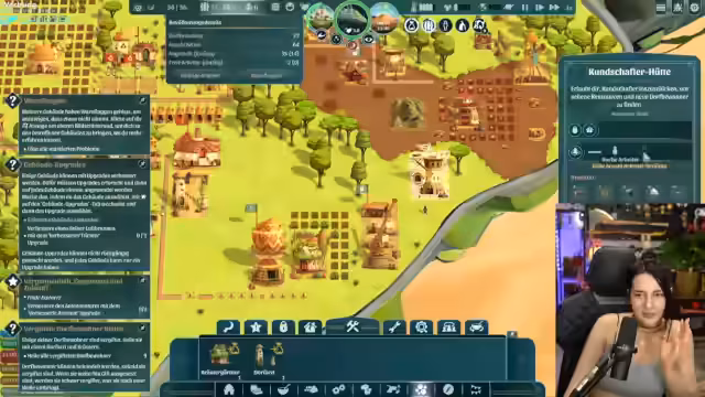 01:19:40Stream navigiert durch seine Spielwelt, muss Entscheidungen über Routen treffen und sucht nach einem Arzt für sein Dorf. Er berichtet von verschiedenen Ereignissen wie Hagelsturm, der die Zufriedenheit senkt, und von der Herausforderung, vergiftete Dorfbewohner zu heilen. Das erfordert spezielle Gebäude wie einen Kräutergarten und einen Dorfarzt.