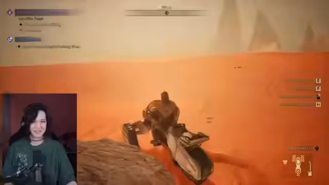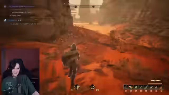 02:41:56Der Streamer redet über Spice Girls, die neu geprägt werden sollen, und dass Spice das beste ist. Er fragt, ob Dranglin noch lebt, und beginnt Ressourcen zu sammeln. Plötzlich bricht ein Sandsturm los und er muss in Sicherheit. Er erwähnt Gefahren wie Treibsand und Würmer, die ihn angreifen können.