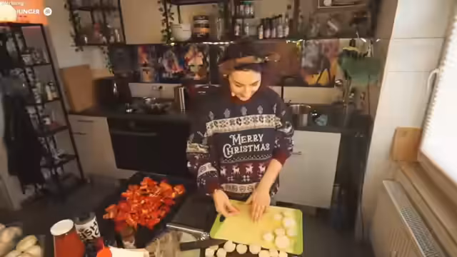00:26:51Der Streamer wurde von Systemmasters geraidet und bedankte sich bei der Community. Im Anschluss kündigte er an, ein veganes Weihnachtsgericht zuzubereiten - speziell vegane Hähnchen-Alternativen mit Reispapier und Gemüse. Er erklärte, dass dies ein traditionelles adventliches Gericht sei, das live im Stream zubereitet und gemeinsam mit den Zuschauern genossen werden soll. Dies markierte den Übergang vom Chaos-Teil zum geordneten Kochvorgang.