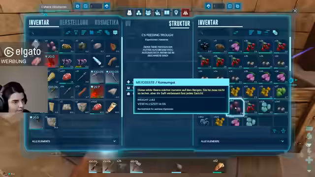 04:11:42Nachdem die ersten Hürden überwunden scheinen, tauchen neue Herausforderungen auf. Der Streamer entdeckt Baupläne für eine vier Meter hohe Wand mit Stacheln, was ein neues Projekt darstellt. Gleichzeitig wird sein Inventar massiv überlastet, was die Bewegung und Handlungsfähigkeit einschränkt. Dies zwingt ihn dazu, ständig Gegenstände abzulegen und seinen Dino zu entlasten, was den Fluss des Spielvergnügens stört.