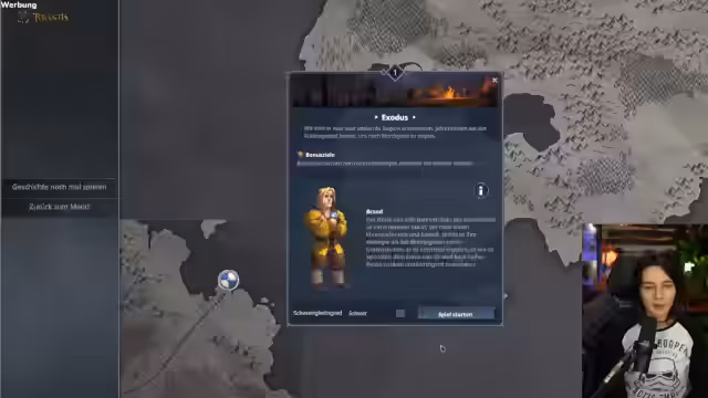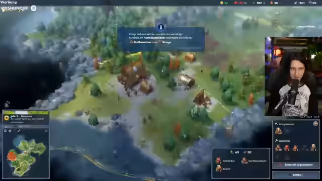 04:15:48Der Streamer wechselt zu einem neuen Spiel namens 'Northgard', einem Strategiespiel, das sich in der Early-Access-Phase befindet. Es wird eine Kampagne gestartet, um die Mechaniken des Spiels kennenzulernen. Die Textgröße im Spiel wird als zu klein empfunden, was eine Anpassung der UI-Skalierung erforderlich macht. Die Geschichte beginnt mit einem Überfall und dem Verlust eines königlichen Symbols, was den Protagonisten zur Rache antreibt. Die ersten Aufgaben bestehen darin, die Grundbedürfnisse des Clans zu decken: Nahrung, Holz und Häuser. Dorfbewohner werden zu Spähern ausgebildet, um die Umgebung zu erkunden und neue Gebiete zu besiedeln, um Ressourcen zu sichern und den Clan zu erweitern. Die Animationen und die Atmosphäre des Spiels werden positiv aufgenommen.