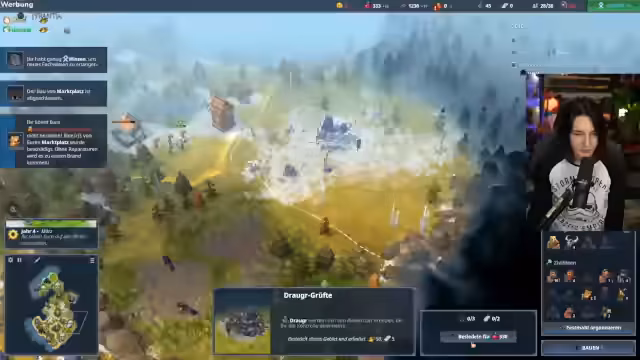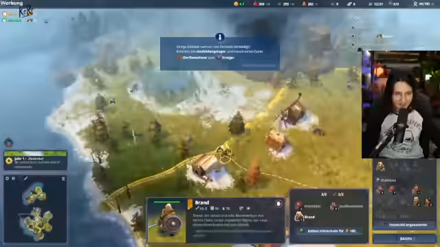 06:48:37Die Konfrontation mit Hagen, dem Erzfeind, spitzt sich zu. Er plant Söldnerüberfälle, was die Notwendigkeit von Verteidigungstürmen an den Grenzen des Hoheitsgebiets und die Verbesserung der Speerlager unterstreicht. Die Ressourcenknappheit, insbesondere bei Holz und Stein, erschwert die strategischen Anpassungen. Es wird versucht, mit den Kobolden zu handeln, doch dies führt zu einem sofortigen Kampf. Die Bevölkerung ist unzufrieden, und es brennen Gebäude ab, was die Situation weiter verschlechtert. Der Spieler muss schnell handeln, um die Verteidigung zu organisieren und die Angriffe abzuwehren.