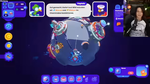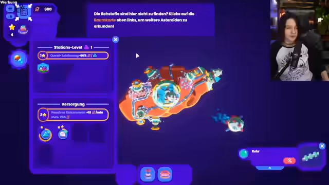 00:37:44Die Streamerin kündigt an, das Spiel 'Starbirds' zu spielen, von dem sie bereits die Demo kannte und als 'sehr süß' in Erinnerung hatte. Sie erwähnt, dass das Spiel von den Entwicklern von 'Dorfromantik' und 'Kurzgesagt – In a Nutshell' stammt und sich noch im Early Access befindet. Im Spiel übernimmt die Spielerin die Rolle eines Vogels, der im Weltraum Rohstoffe abbaut. Die erste Mission besteht darin, Eisen zu fördern, indem Extraktoren auf Asteroiden platziert und mit einer Startrampe verbunden werden. Anschließend müssen Aluminium und weitere Rohstoffe gesammelt werden, um die Raumstation auszubauen und neue Module wie Wohnquartiere zu errichten. Die Spielerin muss neue Asteroiden erkunden, um alle benötigten Materialien zu finden und ihre Credits aufzufüllen.