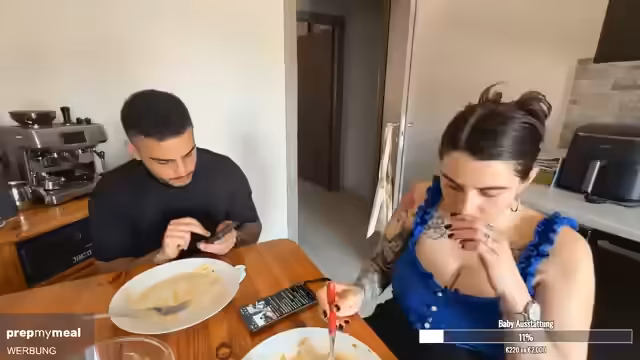 04:00:02Es wird über verschiedene Essensmöglichkeiten diskutiert und eine Entscheidung für ein Gericht von PrepMyMeal gefällt, ein Red Thai Curry. Die Streamerin erklärt die Vorteile dieser vorgekochten Mahlzeiten, die kostengünstiger und schneller als Außer-Haus-Optionen sind. Gleichzeitig werden verschiedene Zutaten wie Bohnen und Zwiebeln zubereitet und das Gericht in den Ofen geschoben.