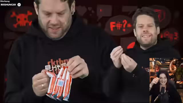 02:44:29Der Streamer präsentiert ein humorvolles Reel, das sich mit der problematischen Verpackung von Milchschnitten auseinandersetzt. Er beschreibt die Produkte als "zarte Wesen", die in "katastrophalen Verpackungen" gefangen sind. Das Video zeigt die Schwierigkeiten, die Snacks ohne zu beschädigen, aus der Plastikfolie zu befreien. Der Streamer teilt die Frustration über die umständliche Verpackung und findet, dass man auf die Produkte „vorsichtig zugreifen“ müsse, ähnlich wie bei einem „Karate-Brett“.