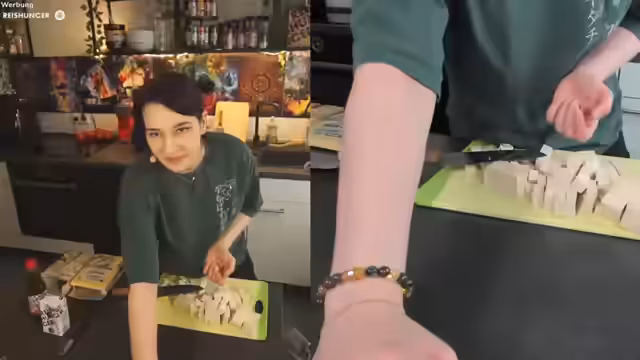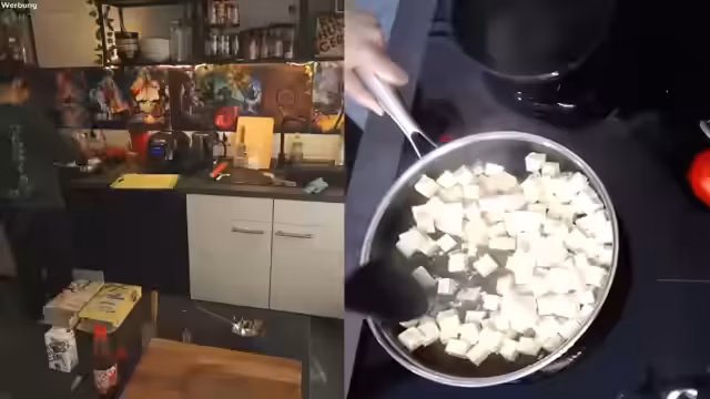 00:21:48Der Streamer entscheidet sich, Tofu in einer ße einzulegen und einen Tomatensalat mit Reis zuzubereiten. Er testet zwei verschiedene Tofu-Sorten aus Aldi und Rewe und vergleicht ihre Konsistenz und Geschmack. Er erklärt den Prozess des Einfrierens und Auftauens von Tofu und wie sich dies auf die Konsistenz auswirkt. Nach dem Braten der Tofu-Stücke stellt er fest, dass der Aldi-Tofu ihm besser schmeckt und eine weichere Konsistenz hat.